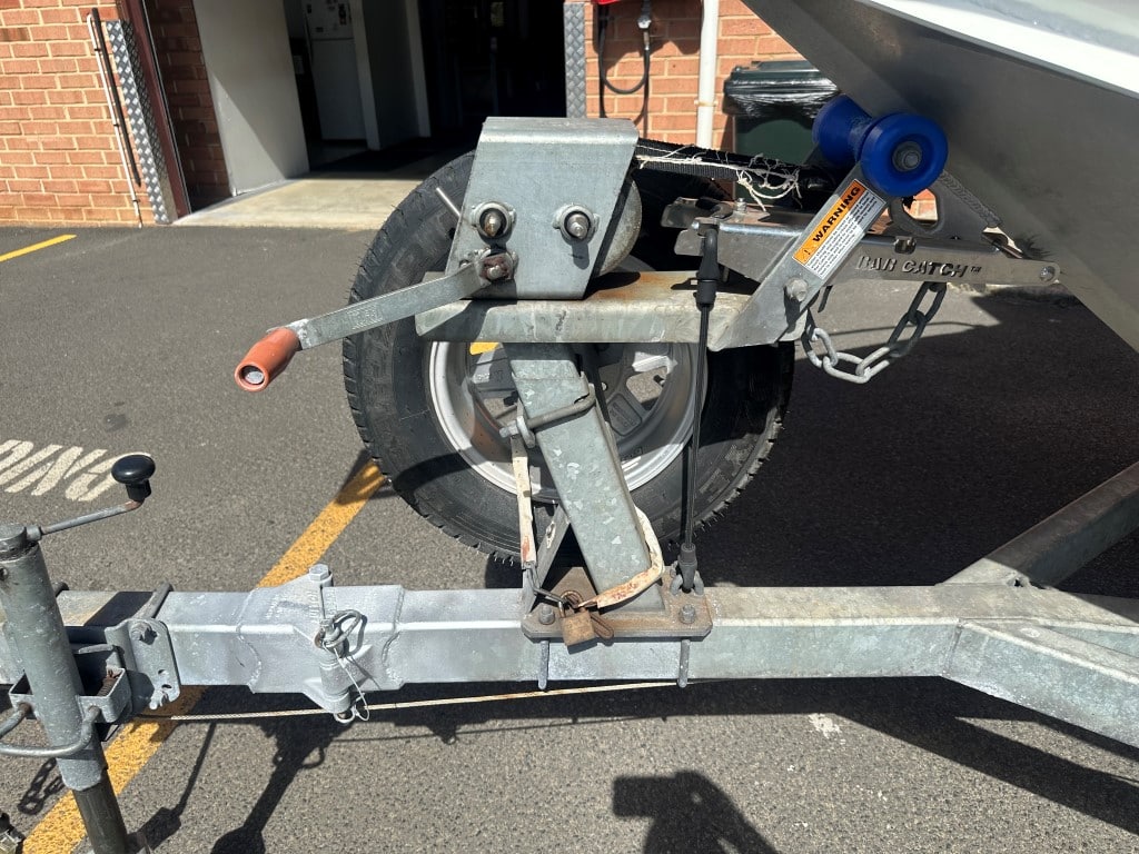 ALL ON A EASYTOW TANDEM TRAILER GALVANISED STEEL TRAILER WITH MECHANICAL BRAKES, SPARE WHEEL, DRIVE ON BAR CATCH AND SWING AWAY DRAW BAR