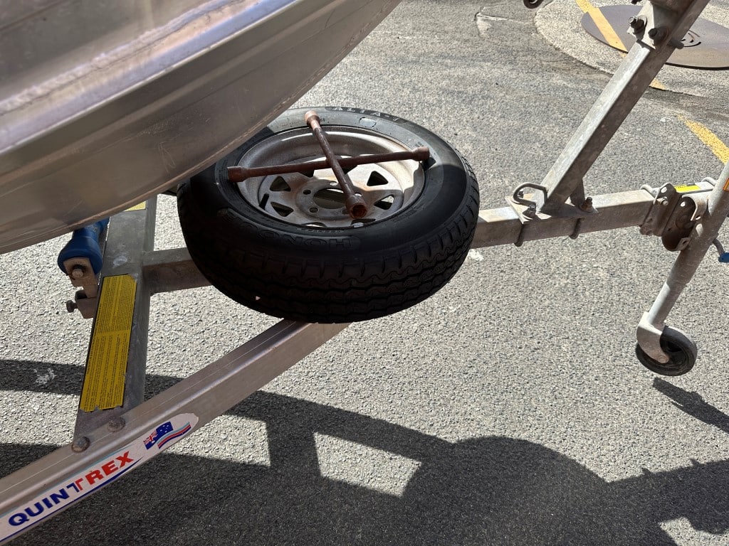 ON A QUINTREX ALI TRAILER WITH A SPARE WHEEL